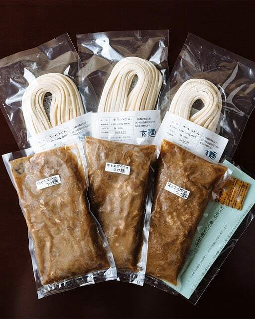 牛と土ごぼうのつけ麺は、太麺でご用意します。冷凍1週間保存出来ます。